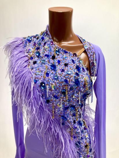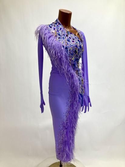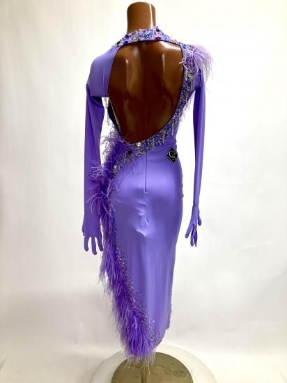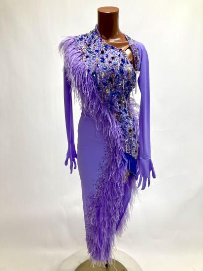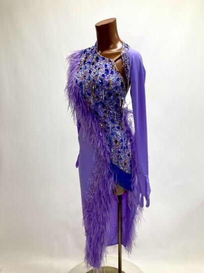 【タイムSALE中】ラテン HU ラベンダー・羽 Mサイズ126〜127cm丈 220926-0054