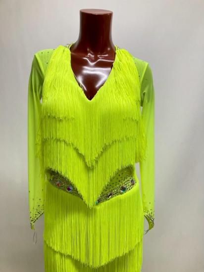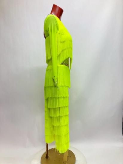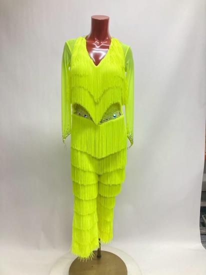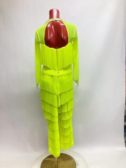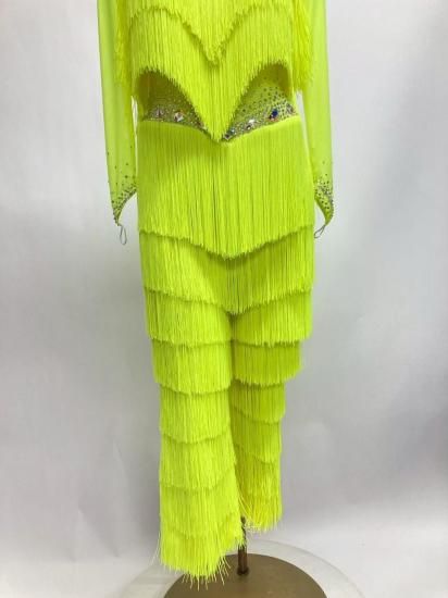 フリンジパンツラテンドレス FX 蛍光イエロー Mサイズ126cm丈 250702-057-11
