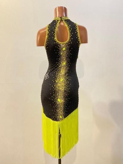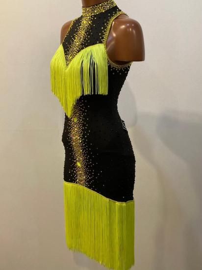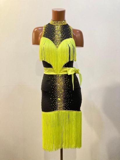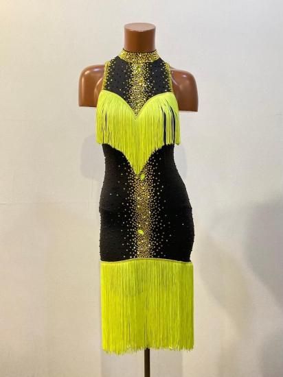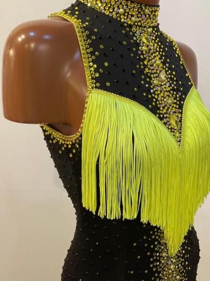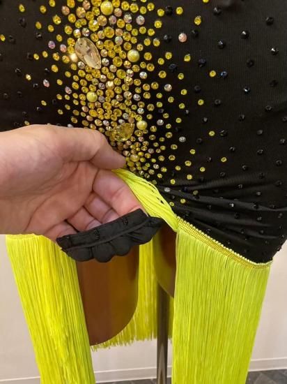 ラテン BS 黒 イエローフリンジ Sサイズ 一点物
